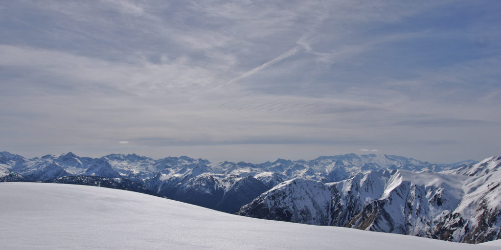 Vers 2200m d’altitude la pente s’adoucit. Puis par une large crête quasi horizontale nous gagnons le sommet du Cap de Closos (2418m)